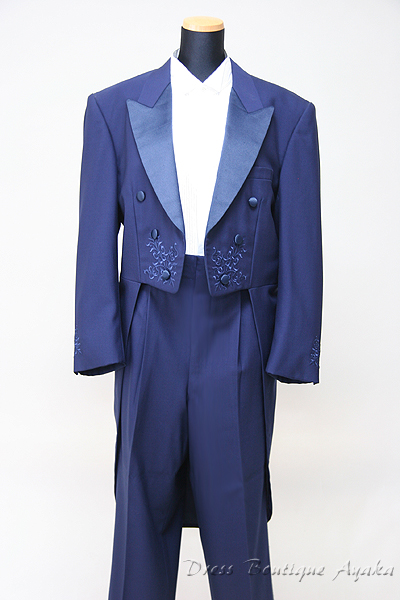 お洒落な刺繍の紺色のテールコートは紳士的な魅力(A-L size)