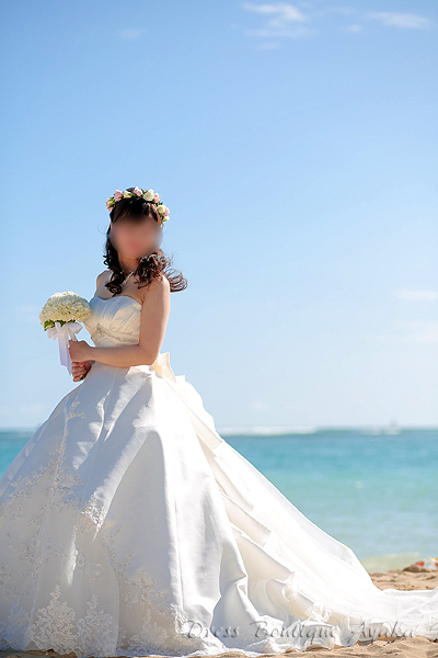ロングトレーン(委託者様着用写真参照)を外してショートトレーン(トルソー写真参照)にもできます。